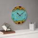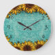 Turquoise Leather Tooled Bright Sunny Sunflowers Large Clock