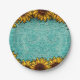 Turquoise Leather Tooled Bright Sunny Sunflowers Paper Plates