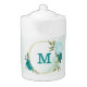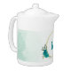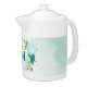 Beautiful teapot featuring turquoise and light blue flowers and green leaves