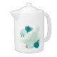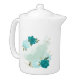 Beautiful teapot featuring turquoise and light blue flowers and green leaves
