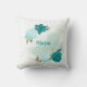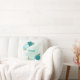 Beautiful throw pillow featuring turquoise and light blue flowers and green leaves