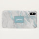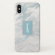 Elegant iPhone X case done in a white, gray and turquoise foil looking marbled pattern. A gray and turquoise square text area, in the middle of the case, has a single white letter monogram. Personalize the one letter monogram, for yourself or as a great gift idea.