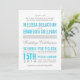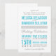 This invitation features modern and script typography in turquoise and gray.