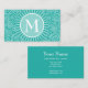 A contemporary monogram design in turquoise aqua and white with whimsical swirl spirals and classic white monogram.