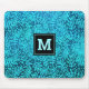 Turquoise monogram foliage leaves pattern modern mouse pad