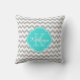 Turquoise Monogram Grey Chevron Pattern Throw Pillow