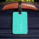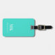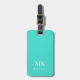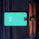 A turquoise colored background. Personalize and add your monogram letters and full name on the front. Your contact information on the back.