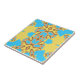 Add a pop of vibrant color and unique style to your home decor with this striking decorative ceramic tile. Featuring a beautiful symmetrical abstract tribal pattern in shades of bright turquoise, mustard yellow, warm brown, and tan, this bohemian-inspired design is perfect for elevating any space. Use it as a colorful focal piece for your kitchen backsplash, a unique bathroom vanity accent, or even as an artistic standalone coaster for your living room coffee table. Whether you are searching for the perfect eclectic housewarming gift or updating your own interior design aesthetic, this retro boho pattern tile brings a warm and welcoming energy to your home.