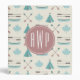 A gift featuring pattern with illustrations of a chevron tipi, arrows, canoe, and maple leaf. Pattern has turquoise and red color scheme. Personalize with your monogram.