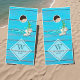 Natural Wood Cornhole Set, Royal Blue and Yellow bags