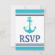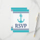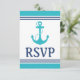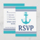 Wedding RSVP with sky blue heart anchor and navy blue stripes.