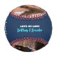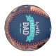 “World’s greatest Dad.” Let Dad know what you really think of him. Cool, modern white, aqua blue typography, and aqua blue banner with multicolored dots, overlay a navy blue background. Add two photos of your choice and customize the copy for the perfect, personalized keepsake baseball that he’ll treasure always. Makes a great Dad gift for Father’s Day or his birthday!
