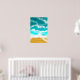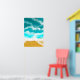 Pretty Ocean Art Poster. Blue, turquoise and teal waves pounding against a sandy shore.