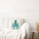 Turquoise Octopus Illustration on Cream Throw Pillow