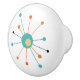 Turquoise Orange Atomic Starburst Mid Century Ceramic Knob