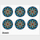 This colorful digital art mandala round sticker features a turquoise, blue and orange color theme with faux metallic texture accents - by katz_d_zynes