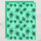 Paper in a pattern of peacock feathers, in turquoise / peacock green, with rust and cobalt blue eye, on a pastel aqua background