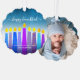 Turquoise Photo Hanukkah Menorah Candles Modern Ornament Card
