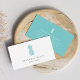 Chic modern design features a tropical turquoise pineapple illustration on a crisp white background. Add two lines of custom text to the front, and customize the back with your full contact details in white on a matching robin's egg blue background, with a smaller white pineapple illustration. Perfect for interior design or hospitality industry professionals.
