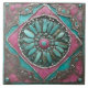 Turquoise & Pink Boho Mosaic Mandala Artwork Ceramic Tile