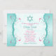 Turquoise Pink Floral Bat Mitzvah Invitation