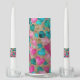 TURQUOISE PINK GOLD WATERCOLOR HEARTS UNITY CANDLE SET
