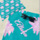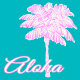 Pink and white palm trees and aloha text on a turquoise background. A fun summery tropical look for your backyard pool or the beach this summer.