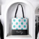 A fashion forward look that's always in style, this design features bright turquoise polka dots with a contrasting black band and custom monogram that you can edit with your desired name or other text. It makes a great personalized gift!