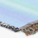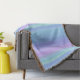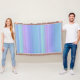 This beautiful throw blanket displays a soft pastel rainbow abstract pattern of blue, purple, green and turquoise stripes.