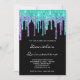 Turquoise Purple Glitter Drips Black Quinceañera Invitation