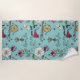Turquoise Queen Bee Floral Pattern Beach Towel