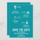 Tell all your guests a bit about your relationship ~ maybe some fun facts they don't know! Your guests will love this fun whimsy Save the Date in the color Turquoise / Teal and White! For inquiries about custom design changes by the independent designer please email paula@labellarue.com BEFORE you customize or place an order.