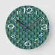 Turquoise Retro Ovals and Semi-Circles Round Clock
