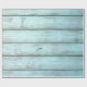 Weathered wooden planks are painted light aqua blue, creating a rustic and serene appearance
