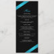 4" x 9.25" Turquoise ribbon on black background. Elegant, fully customizable wedding menu template.