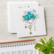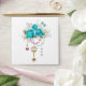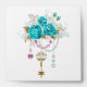 Antique gold key with trendy turquoise roses decorated with leaves of white gold and pink and blue beads. Fashionable color. Turquoise roses. White gold. Blue tiffany.