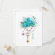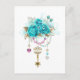 Antique gold key with trendy turquoise roses decorated with leaves of white gold and pink and blue beads. Fashionable color. Turquoise roses. White gold. Blue tiffany.
