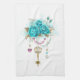 Turquoise Roses with Keys Kitchen Towel