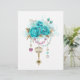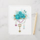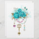 Antique gold key with trendy turquoise roses decorated with leaves of white gold and pink and blue beads. Fashionable color. Turquoise roses. White gold. Blue tiffany.