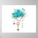 Turquoise Roses with Keys Poster