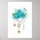 Turquoise Roses with Keys Poster