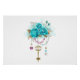 Antique gold key with trendy turquoise roses decorated with leaves of white gold and pink and blue beads. Fashionable color. Turquoise roses. White gold. Blue tiffany.