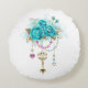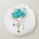 Turquoise Roses with Keys Round Pillow