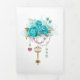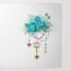 Antique gold key with trendy turquoise roses decorated with leaves of white gold and pink and blue beads. Fashionable color. Turquoise roses. White gold. Blue tiffany.