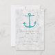 Perfect for a nautical themed wedding is this Rustic Anchor Wedding Response Card with a turquoise boat anchor on a light gray marble look background. This classic and simple RSVP card is easy to customize with your wedding details. Find more personalization options by clicking Customize.