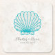 Turquoise Rustic Seashell Wedding Square Paper Coaster