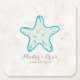 Turquoise Rustic Starfish Wedding Square Paper Coaster