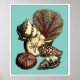 Go underwater to explore the sea with all these different sea creatures. This vintage piece of art is a perfect addition to any sea anemone lovers with a vibrant turquoise background and red accents on the seashells. Get your art print today on your product.