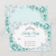 Turquoise and silver floral Quinceanera RSVP reply card. Features, script font, silver butterflies, watercolor roses and tiara. Perfect for an elegant princess style glam celebration. Personalize with your own details.