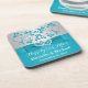 This personalized and elegant turquoise blue and silver gray floral "Happily Ever After" wedding favor coaster set of 6 has a PRINTED teal blue ribbon and bow with a pair of diamond jewels and FAUX blue glitter joined hearts on it that would be an ideal way to thank your wedding guests with, or give as a keepsake to the wedding party attendants. Break up the set of six into pairs of two, drop them into an organza bag, tie off with a ribbon and favor tag, and you'll have a useful favor to hand out. The text is customizable. If you require any other matching items, please email your request to niteowlstudio@gmail.com.